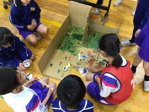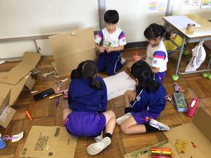 校外学習で作った4種類のおもちゃを自分たちの力でもう一度作ることに挑戦し、遊び方やコース、ルールなどを自分たちなりに工夫しました。