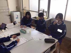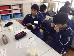 今日は栄養教諭の岡田先生から、だしの旨みを体験する授業をしてもらいました。