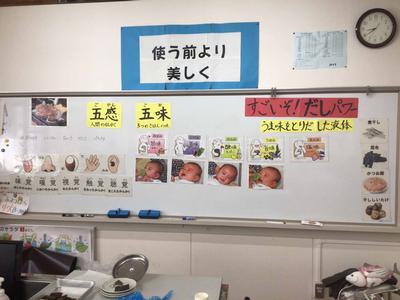 先月の調理実習では煮干しからだしを取りましたが、昆布やかつお節のだしのおいしさにみんなニコニコでした。今日の経験をもとに、お家や給食で食べているだしのおいしさにもまた気付けるように声かけしていきたいと思います。また、お家でもどのダシが1番美味しかったかお話を聞いてみてください。