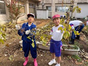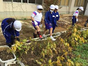 11月27日に、今まで育ててきたダイズの収穫作業を行いました。