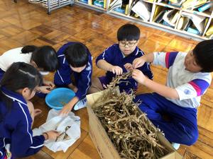 【3年生】大豆を取り出そう