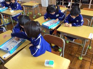 ゲームをして楽しみながら、点数を数えることで数の大小についての理解も深めていました。