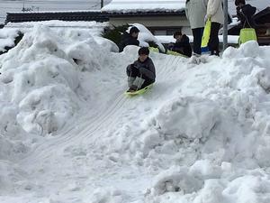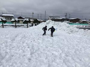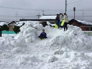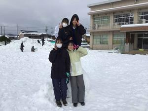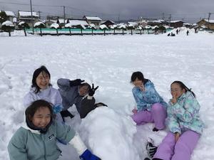 雪がたくさん積もった校庭で、雪遊びをしました。