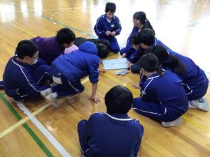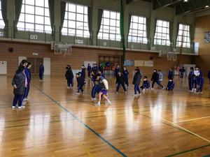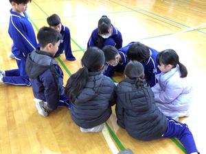 体育館いっぱいを使って50人で行う「だるまさんがころんだ」は、とても楽しそうでした。盛り上げようとして(?)動いてしまう6年生を、3年生が指名してアウトにする光景は、笑いに包まれて微笑ましく見えました。「イントロ当てクイズ」は、頭を突き合わせながら3年生の話を聞いている6年生が、とても優しかったです。