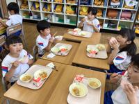 11日には、みんなでむいたグリンピースが入った豆ご飯をいただきました。
