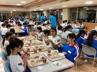 夕食係が大活躍し、各グループ内でも協力して、スムーズに夕食の時間を過ごせました。夕食後のキャンドルセレモニーの感動的な時間は研修の思い出の一つになりました。