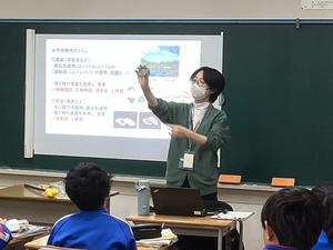 越前国府発掘プロジェクトを担当されている市教育委員会 生涯学習文化財課 学芸員の西脇菜々様を講師にお招きし、国府関連の歴史と発掘調査についての学習を行いました。