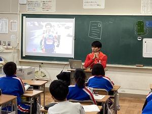 本校出身で箱根駅伝でも活躍されたFBCアナウンサーの田中悠登さんを講師にお招きして、自分の夢を見つめる授業が行われました。