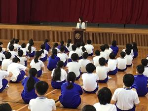 校長先生からは、学習発表会に向けての話がありました。1年生の道徳の教科書にある教材を朗読し、どのような行動をとるのが良いかを考えて行動してほしい、そして立派な発表会にしていきいましょうと呼びかけました。