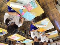 一人ひとり、箱を何かに見立てて飾り付けをします。