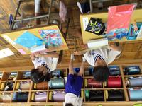 そに箱にフックを付けて、ピンと張った紐をビューンと走らせる(滑らせる)工作です。