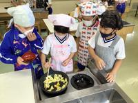 初めての火を使った料理に、緊張しながらもわくわくした様子でクッキングをしました。
