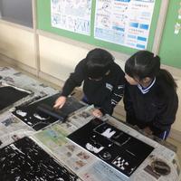 図工で版画をしました。3年生になり、初めて彫刻刀を使っての版画でしたが、どの子も、真剣に掘り、作品を仕上げました。