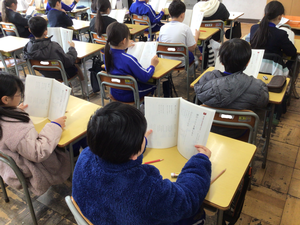 各教室では、新しいワークに名前を書いたり、提出物を集めたり、早速授業を受けたりしていました。また、学校図書館では、冬休みに読んでいた本を返していました。冬休み中はシーンとしていた学校に活気が戻り、元気な気持ちになりました。