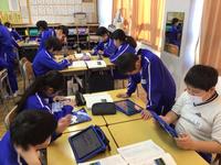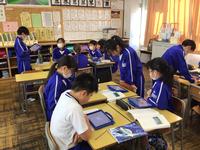 国語の「やなせたかしーアンパンマンの勇気」の学習で、タブレットを使った話し合い活動を行いました。