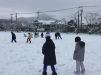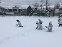 グラウンドにもたくさん雪が積もったので、クラスごとに雪遊びをしました。