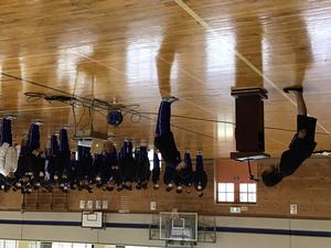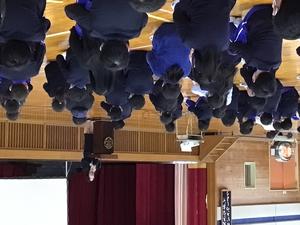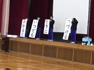 次に生徒指導主事から、先月に引き続き、あいさつについての話がありました。その中で、学年ごとにあいさつの大きさを競うコンテストを行い、生活委員の審査の結果、3年生が一番大きいと発表されました。来月も行う予定ですので、どの学年も普段か大きな声であいさつをしていきましょう。