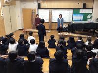 アララギ楽苑の方をゲストティーチャーとしてお迎えし、琴の学習をしました。はじめに、演奏を聴きました。お二人の息がぴったりと合い、とても心が落ち着くような演奏で、子どもたちもうっとりとした表情で聴き入っていました。「手先を見ると、何を弾いているのかわからないくらい速かった。」と集中して見ていました。