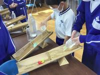 子どもたちからは、「今まではダムは、どういうやくわりをしているのかあまり知らなかったけど、この授業でダムは水をためるところなど、初めて知ったことが多かった。」「ダムは大雨の時に守ってくれるものなんだな。」「竹の節があると、流れる水量が少なくなり、威力も小さくなることがわかった。」などの感想が生まれました。