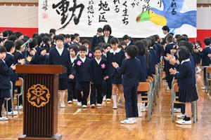 54名の新入生を迎え、学校に活気があふれました。2~6年生は、校歌や言葉、式中の態度で、1年生を歓迎しました。