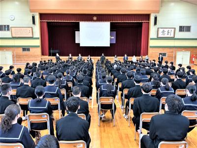 年度はじめの学年集会が行われました。まず、学年所属の先生方一人一人から自己紹介がありました。続いて、学年主任の先生からは、学年目標や学年に対する思いが語られました。生徒たちは先生の話に真剣に耳を傾けていました。これから始まる学校生活に、期待を膨らませている様子がうかがえました。