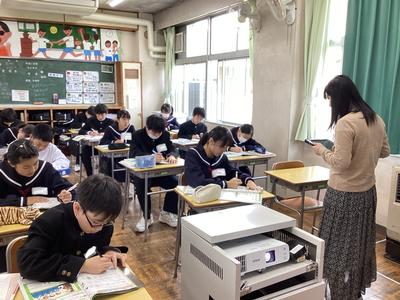 1年3組の英語の様子です。Unit 1が終わり、まとめの Sound and Letters を行いました。その後、Unit 2 に入りました。ここでは、身近な人やものを紹介したり尋ねたりします。