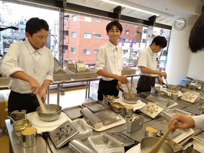 4組は、常盤堂雷おこし本舗雷5656会館で雷おこし作り体験をしました。おいしくなーれと呪文を唱えながら、スピーディに作り上げていました。