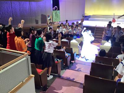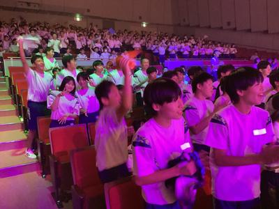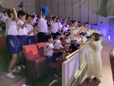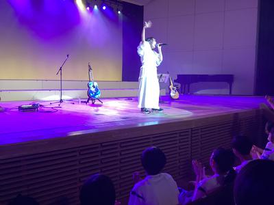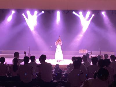 一日目の最後を飾るのは、本校卒業生の「せりかな」さんによる講演とコンサートでした。最初に「夢をかなえること」について自身の経験をもとにお話をして下さいました。質問コーナーをはさみ、いよいよコンサートの始まりです。一曲目の「Night Rainbow」からノリノリでした。その後「brave new world」、「エール」、「キミと」、「星空花火」と演奏が続き、途中からスペシャルゲストの「よしけい」さんも加わわってくれました。アンコールの「理系女子のうた」まで大盛り上がりのコンサートでした。「せりかな」さん、楽しい時間をありがとうございました。