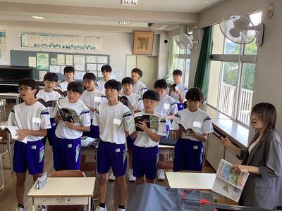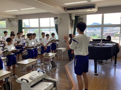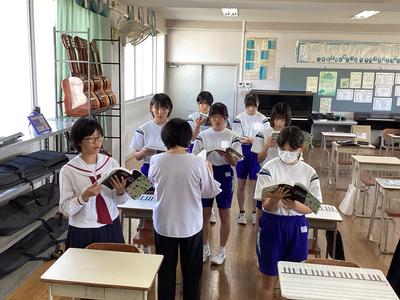 3年4組の音楽の様子です。合唱コンクールで歌う「友~旅立ちのとき~」の練習をしています。3年生には歌詞が心にしみてきますね。想いを込めて歌ってください。