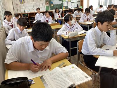 2年2組の国語の様子です。「黄金の扇風機」を題材にして、筆者の主張をとらえていきました。周りの子と話し合いながら自分の考えをまとめていきました。