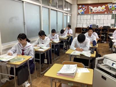 3年3組の社会科の様子です。「平等権」について学習しており、今日は、共生社会を築いていくためにどのような取り組みが求められているか考えました。