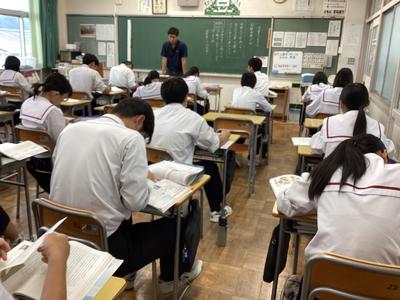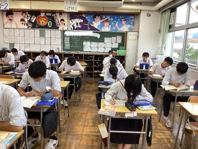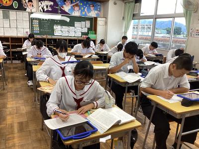 3年2組の国語の様子です。「百科事典少女」という文を読み、本のレビューも含めて批評文を書きました。