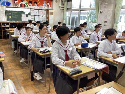 2年3組の英語の様子です。本文に関する問いに英文で答えていきました。文をしっかりと読み解く力が必要になりますね。