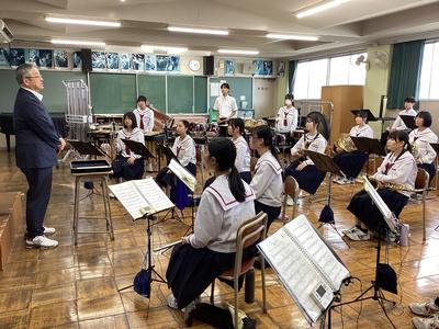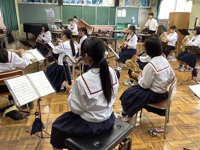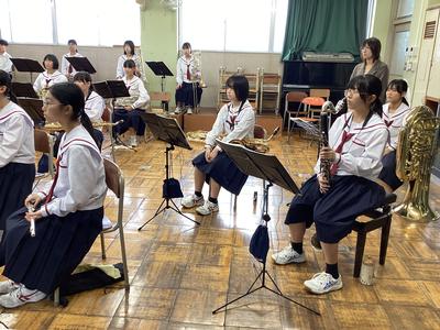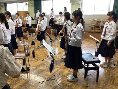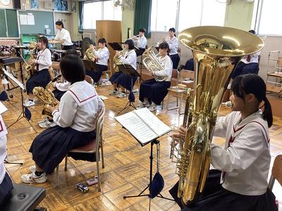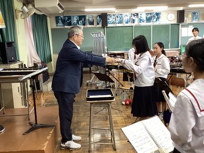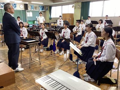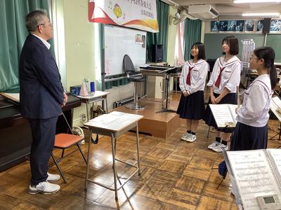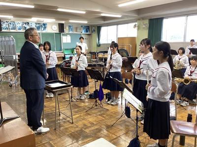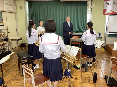 29日(月)に、越前市教育長様に来校していただき、東日本学校吹奏楽大会に出場する吹奏楽部の激励会を開いていただきました。最初に激励金を交付していただき、激励の言葉をいただきました。その後、大会で演奏する「アシュラ」をきいていただきました。教育長様が話されていたように、一音一音を大切にして壮大なドラマを奏でてきます。応援よろしくお願いします。