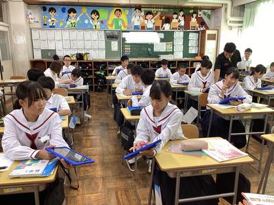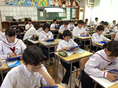 1年5組の数字の様子です。方程式の利用の学習をしています。代金に関する問題を考えました。身近な内容なので考えやすかったですね。