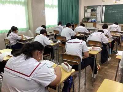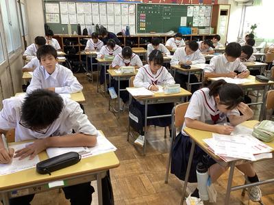 1年4組の数字の様子です。文字式の加減乗除に関する問題演習をしました。しっかりと復習をして、できなかったところを解決しましょう。