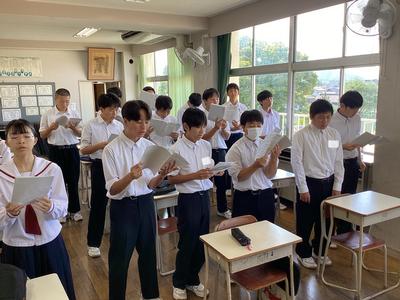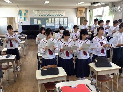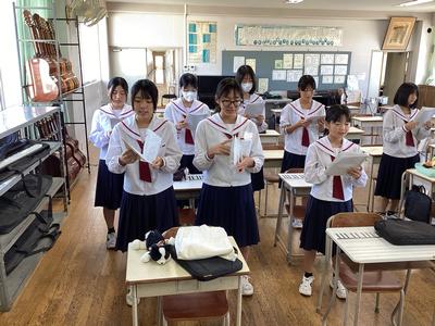 3年2組の音楽の様子です。合唱コンクールで歌う「親しらず子しらず」を歌いました。一つ一つ丁寧に音をとっていきましょうね。
