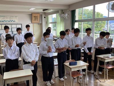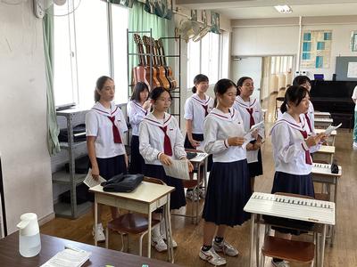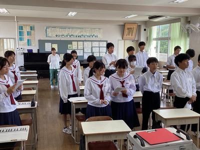 2年4組の音楽の様子です。4組は合唱コンクールで「時を越えて」を歌います。大分音がとれてきて、自信を持って歌えるようになってきているようです。当日までにさらに磨きをかけて下さいね。