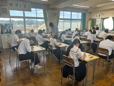 6日(月)に中間テストを3教科行いました。これまで学習してきた成果を発揮し、時間いっぱい問題に取り組んでいました。