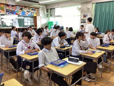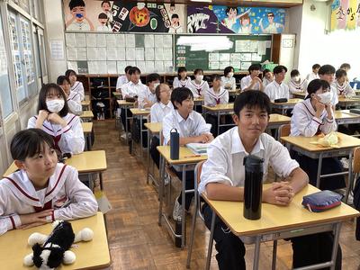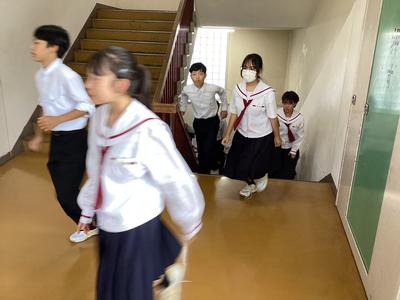 7日(火)に、河川の増水に伴う避難訓練を行いました。各教室で担任から映像を用いた事前指導がありました。その後、放送の指示に従い1階に教室がある生徒が垂直避難を行いました。