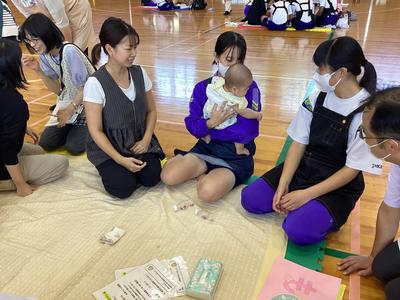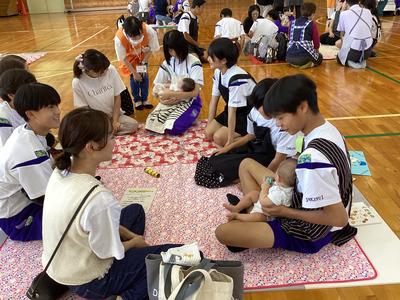 赤ちゃん抱っこ体験が行われ、本日は3年2組と4組の生徒が参加しました。体験を通して、命の重さ、家族への感謝の思い、自分や周りの人を大切にしようとする気持ちが育むことができました。ご協力いただいた赤ちゃんと保護者の皆様、運営に携わっていただいたスタッフの皆様、ありがとうございました。