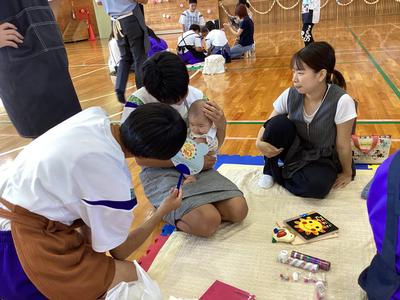 赤ちゃん抱っこ体験が行われ、本日は3年2組と4組の生徒が参加しました。体験を通して、命の重さ、家族への感謝の思い、自分や周りの人を大切にしようとする気持ちが育むことができました。ご協力いただいた赤ちゃんと保護者の皆様、運営に携わっていただいたスタッフの皆様、ありがとうございました。