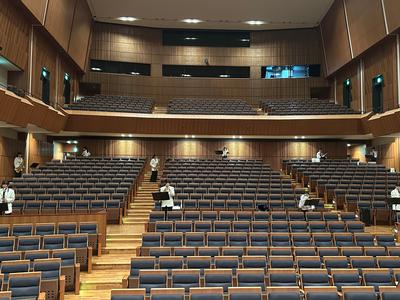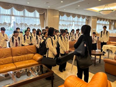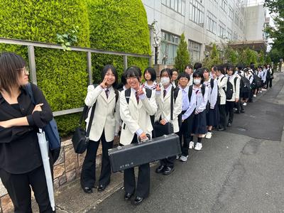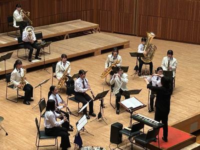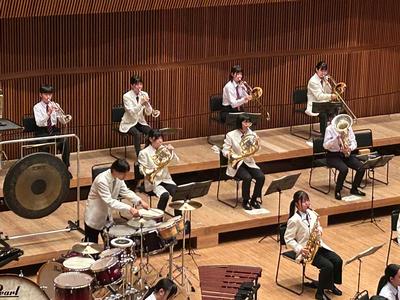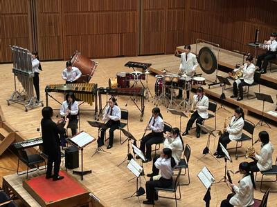 東日本学校吹奏楽大会の当日になりました。午後からの本番を前に大会会場隣のホールで練習をしました。気持ちも表情も本番モードになっています。