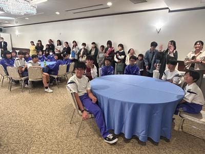 表彰式を終えてホテルに帰ってきました。夕食前に演奏を聴きにきてくださった保護者・ご家族の皆様にお祝いしていただきました。遠方まで来ていただき、子どもたちのために企画をご準備いただき、ありがとうございました。