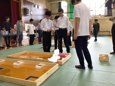 10月11日(土)福井高等専門学校にて開催された第20回越前市ロボットコンテストに本校科学部の生徒が参加しました。日ごろの活動の成果を披露し、競技の結果、「☆ゆっくりMi-kun☆」チームが見事優勝!,「Aさんチーム」が3位に輝きました。おめでとうございます。