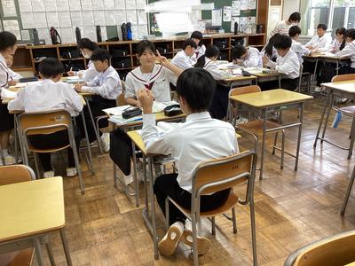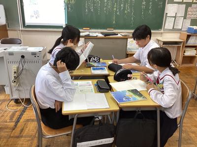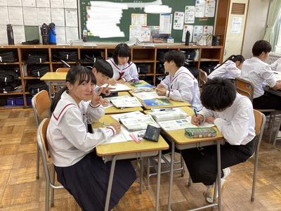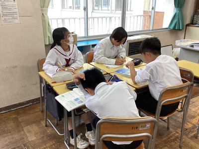 1年1組の国語の様子です。新聞記事と写真があっているかをグループで考えました。長所と短所をしっかりと考えることができました。