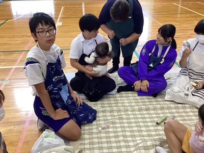 赤ちゃん抱っこ体験が行われ、本日は3年3組と6組の生徒が参加しました。体験を通して、命の重さ、家族への感謝の思い、自分や周りの人を大切にしようとする気持ちが育むことができました。ご協力いただいた赤ちゃんと保護者の皆様、運営に携わっていただいたスタッフの皆様、ありがとうございました。