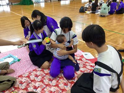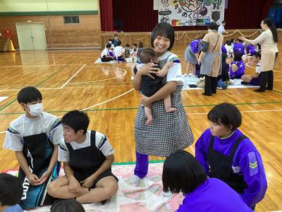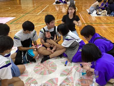 赤ちゃん抱っこ体験が行われ、本日は3年3組と6組の生徒が参加しました。体験を通して、命の重さ、家族への感謝の思い、自分や周りの人を大切にしようとする気持ちが育むことができました。ご協力いただいた赤ちゃんと保護者の皆様、運営に携わっていただいたスタッフの皆様、ありがとうございました。