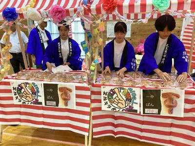 18日(土)に武生西小学校体育館で「西笑まつり」が行われ、本校もパン販売のブースを出展しました。文化祭で教育振興会に振舞っていただいたパンを作ってもらったパン屋さんに依頼し、一中パンを特別に用意してもらいました。ボランティアで参加してくれた2年生生徒3名のおかげで、限定100個のパンはあっという間に売り切れました。お買い求めいただいた皆様ありがとうございました。ボランティアで参加してくれた皆さん、ご協力いただいた教育振興会教養部の皆様ありがとうございました。