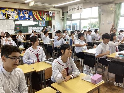20日(月)の朝活動の時間は、体育委員会による「元気もりもりDAY」でした。反射ゲームをして楽しみました。どの教室からも大きな声が聞こえ、とても盛り上がっている雰囲気が伝わってきました。月曜日の朝から笑顔がいっぱいになるのはいいですね。